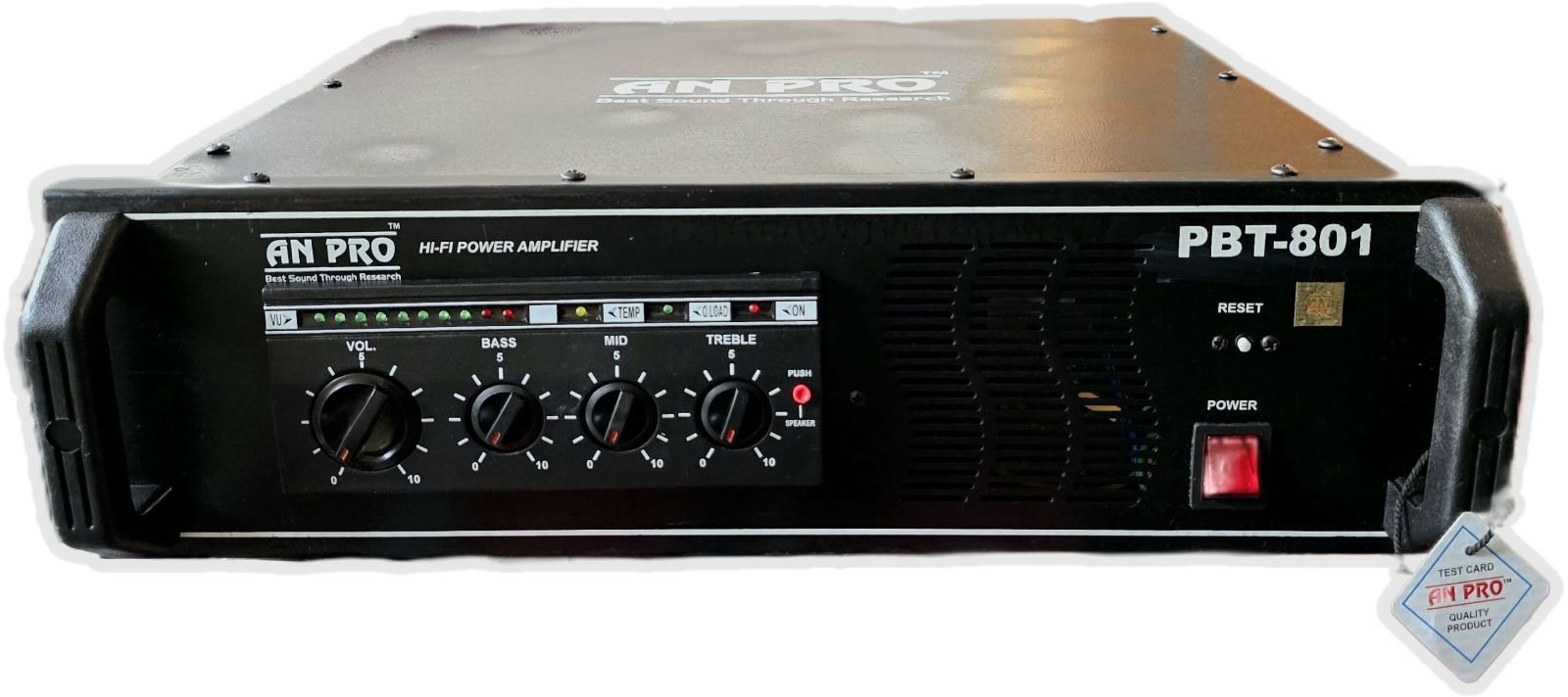 AN PRO PBT-801 is a compact and efficient amplifier designed for PA systems, auditoriums, schools, and worship spaces. With 700W of power and versatile speaker outputs, it delivers clear, powerful, and reliable sound for professional use.